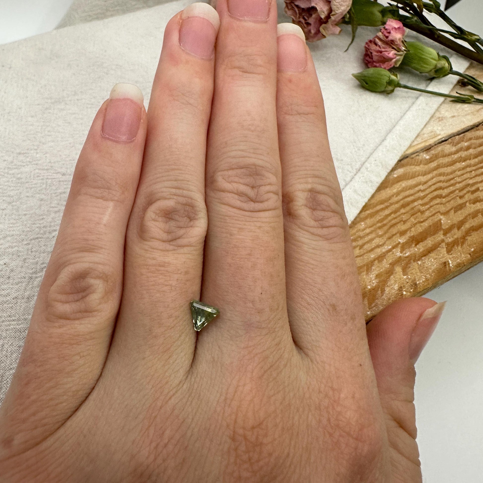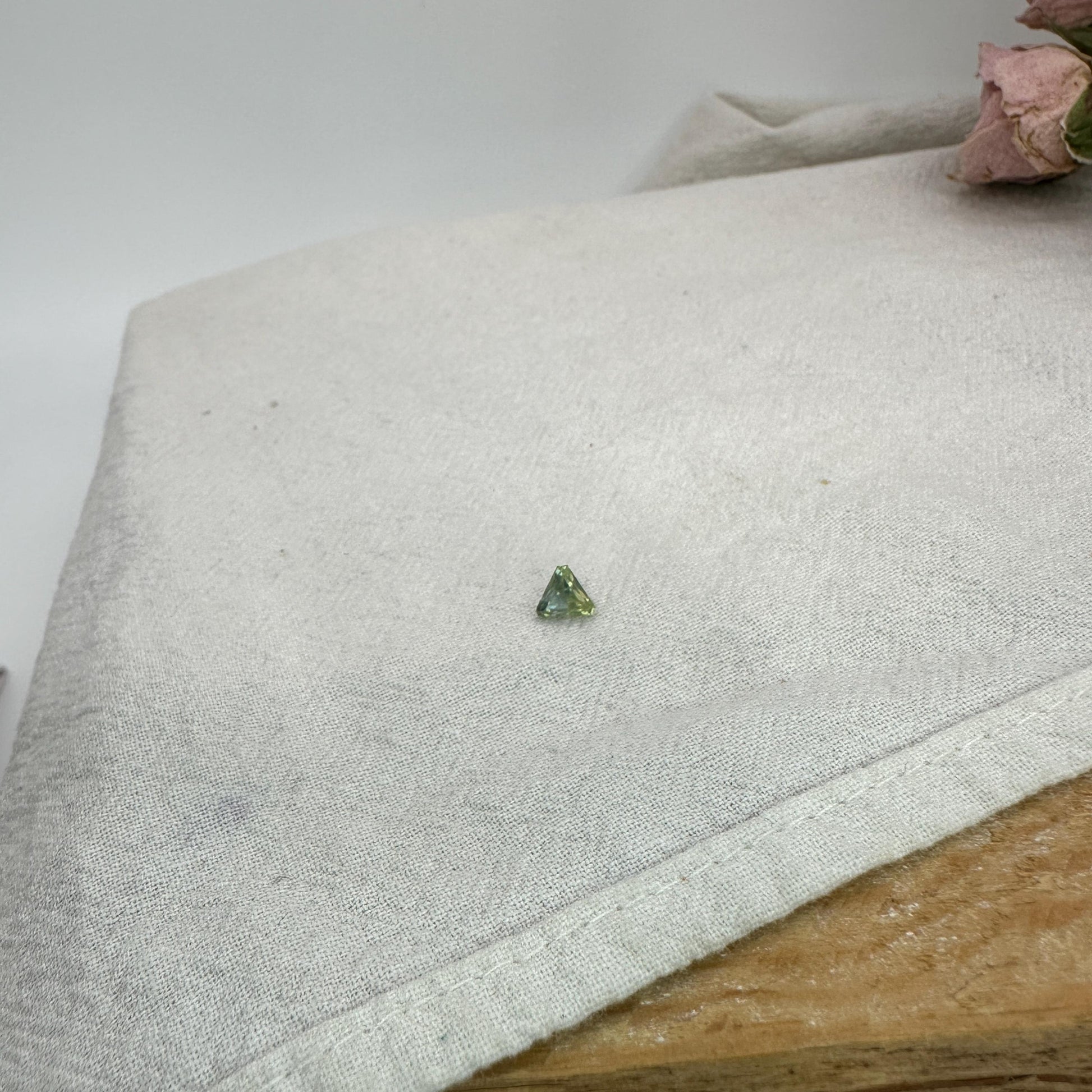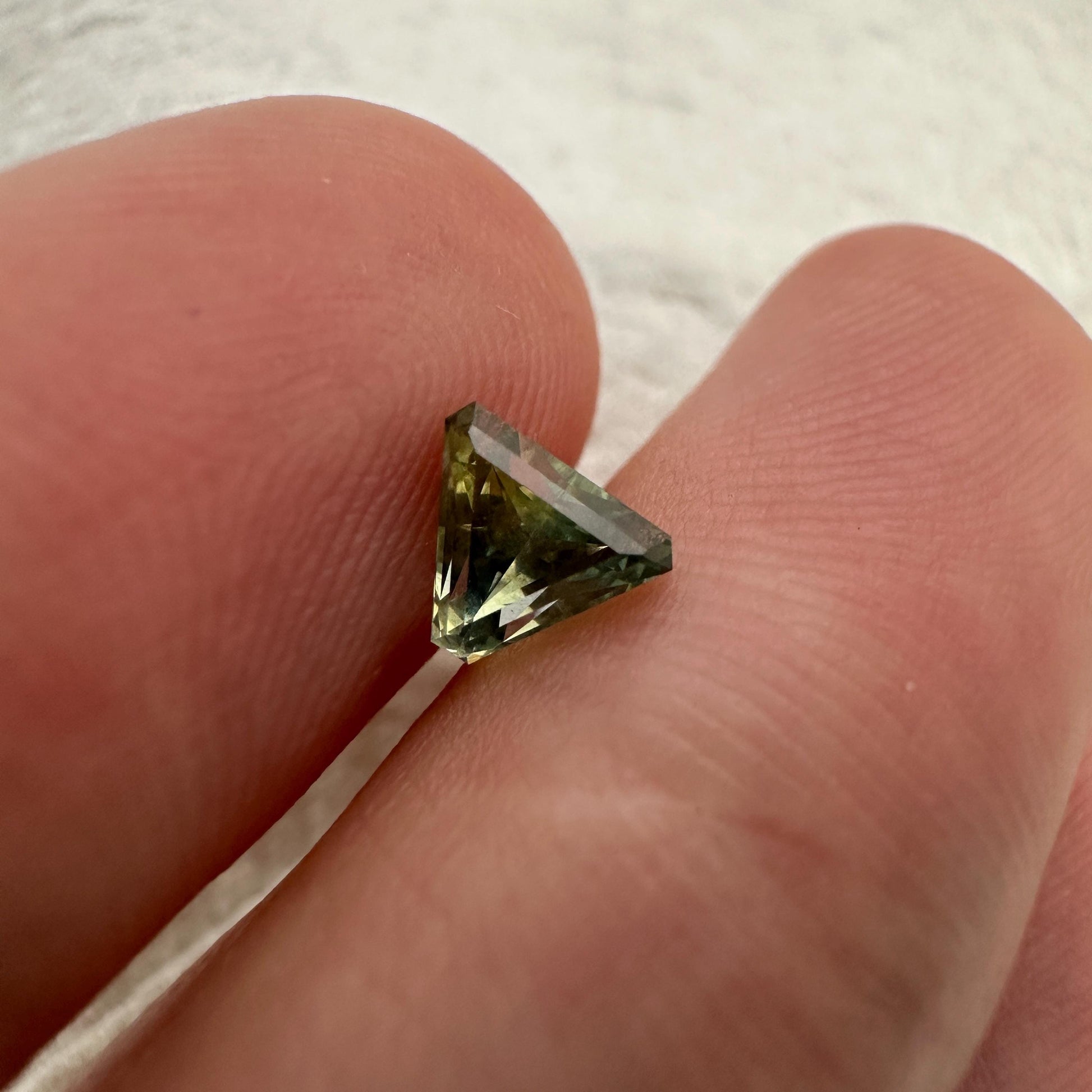 0.68 Carat Yellowish Green Montana Sapphire 5mm Triangle Cut, Natural Unheated Faceted Loose