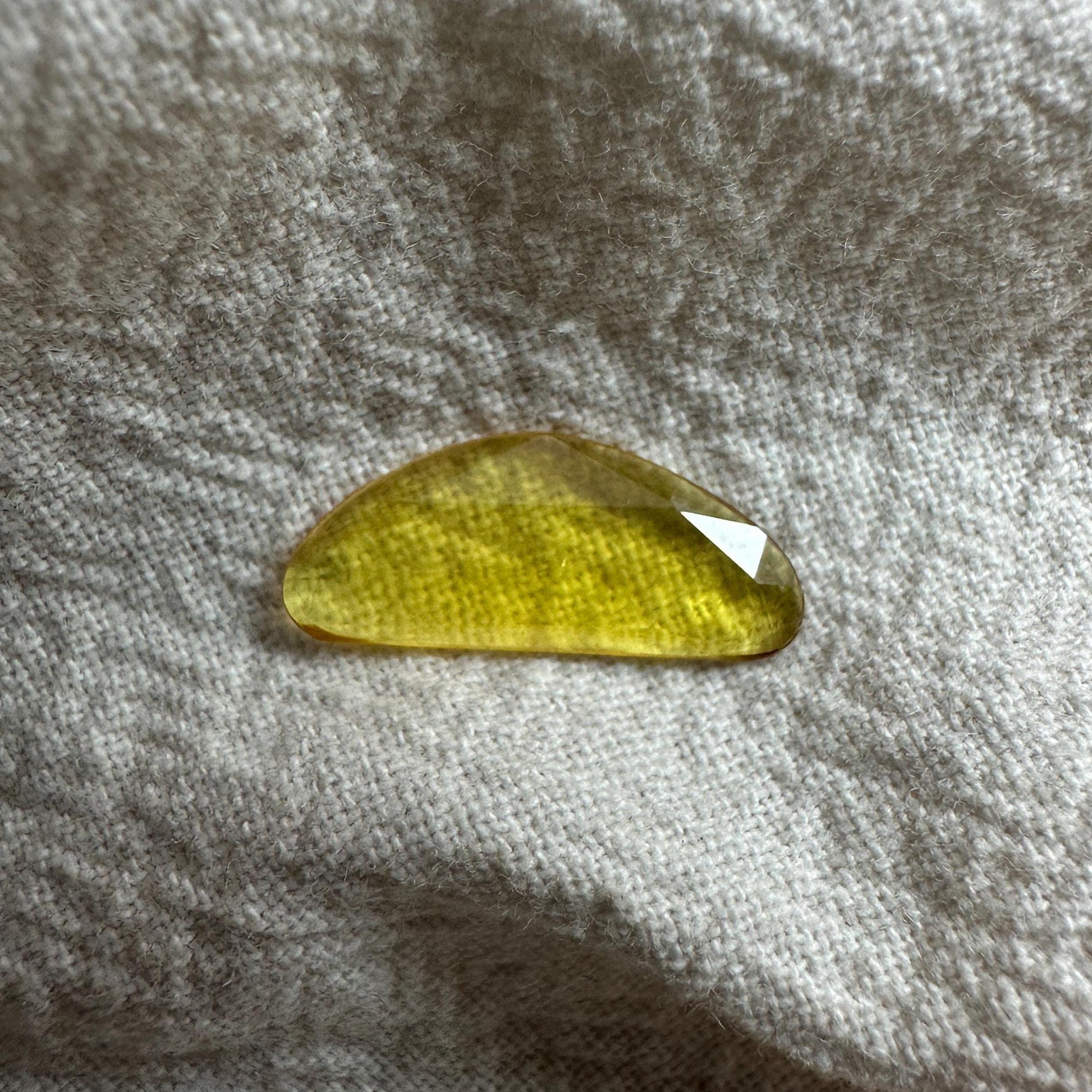 1.63 Carat Natural Yellow Sapphire, 16x6.7mm Rose Cut, BE Yellow Sapphire, Freeform, Beryllium Treated Sapphire
