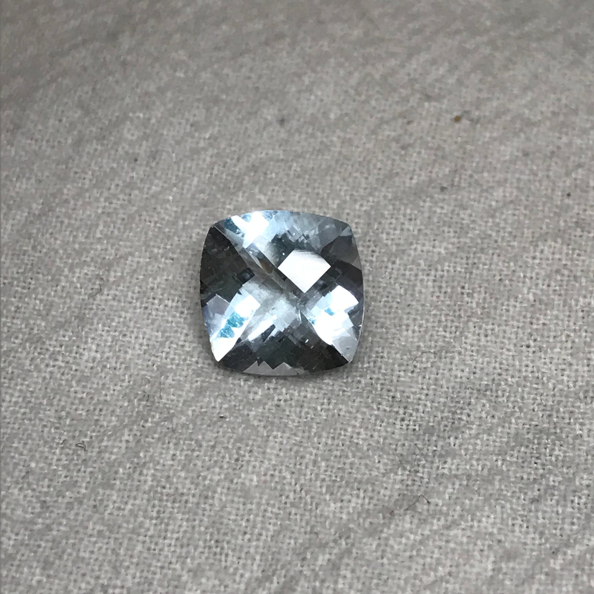 10mm Light Blue Aquamarine 3.19 carat Checker Square Cushion Cut, Included Faceted Loose Gemstone