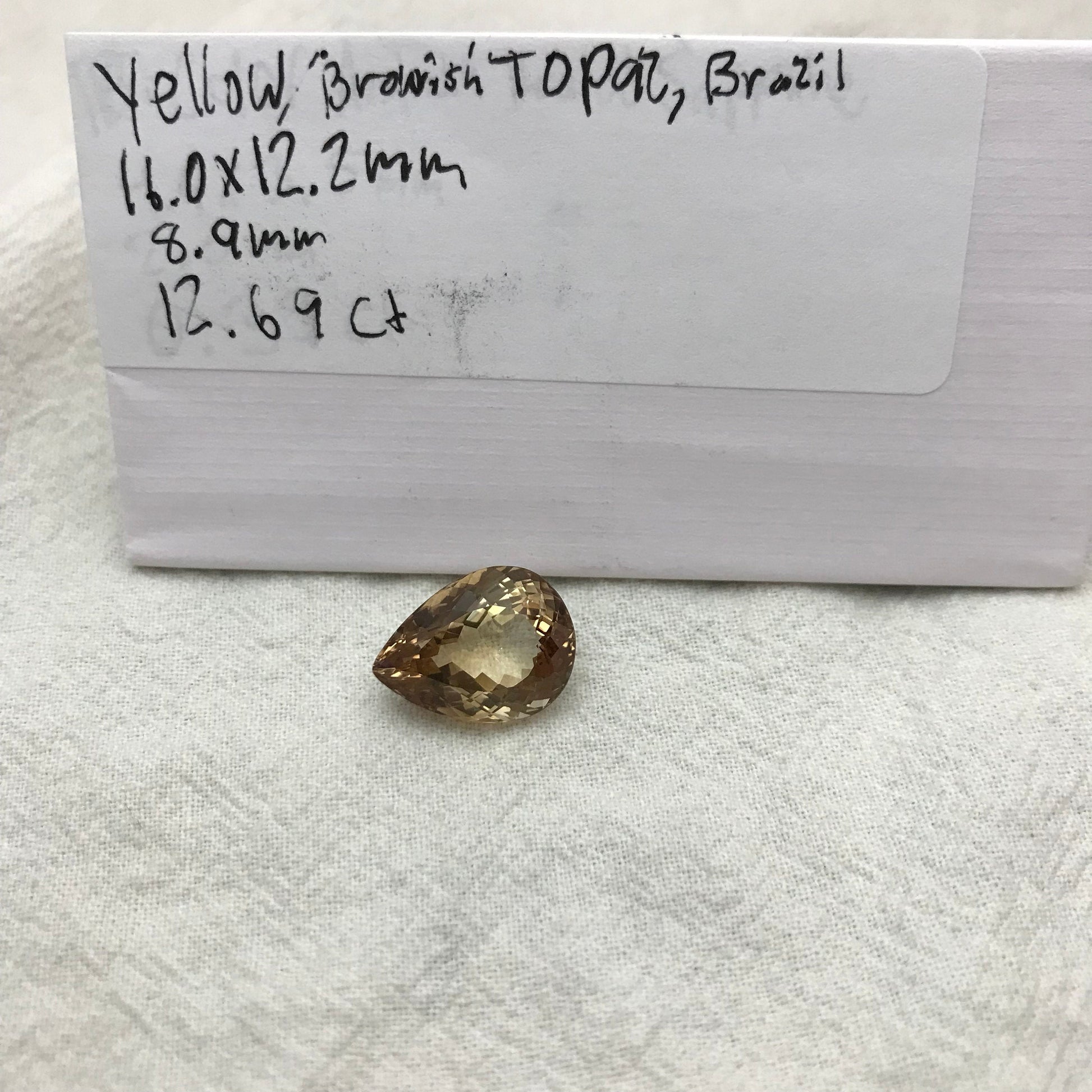 12 carat Natural Orangish Brown Topaz 16x12mm Pear Cut Faceted Gemstone, Large Stone, Loose Champagne Topaz