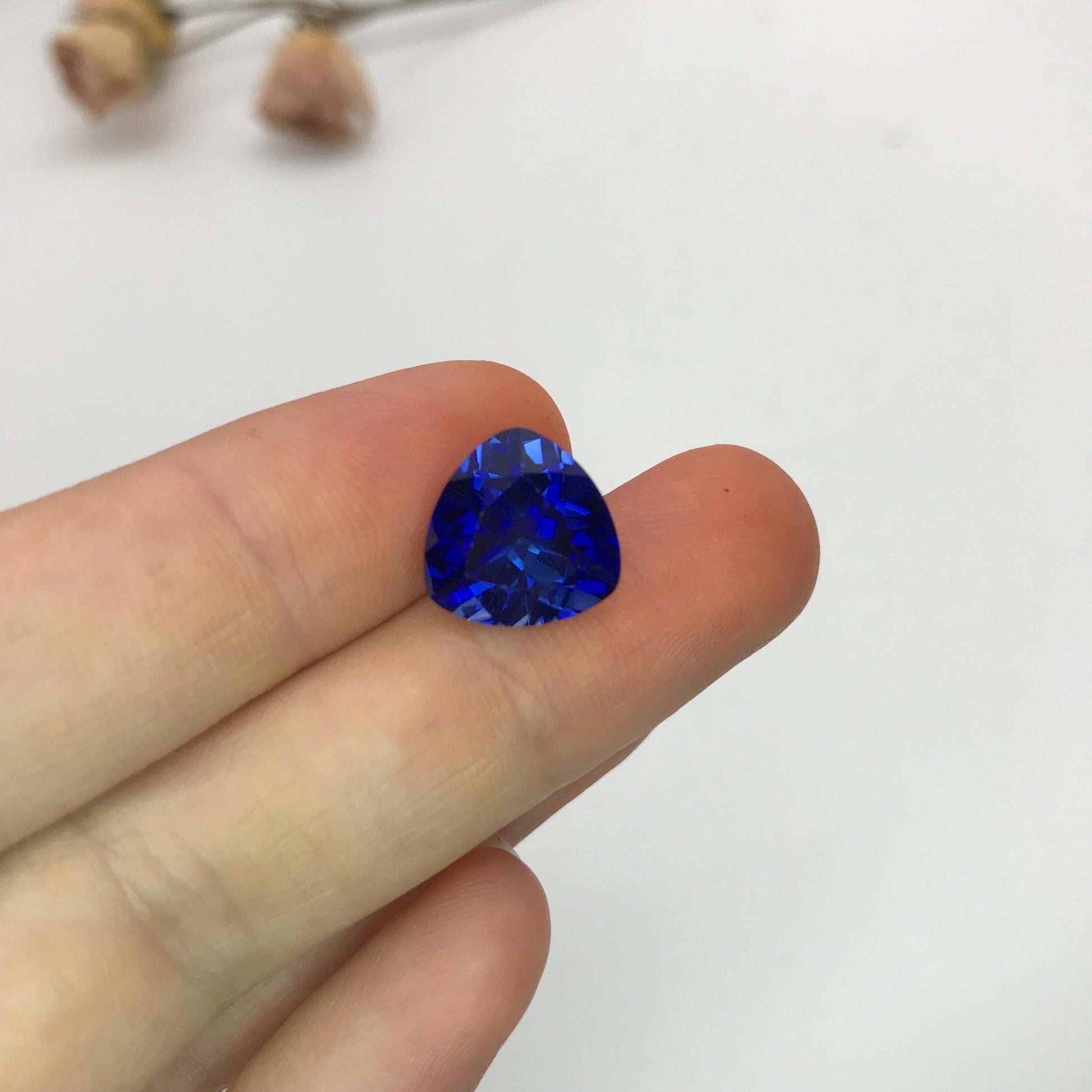 12mm Lab Created Blue Sapphire 7.65 Carat Trillion Cut, For Jewelry, Synthetic Sapphire, Loose Gemstone, Recycled Gemstone