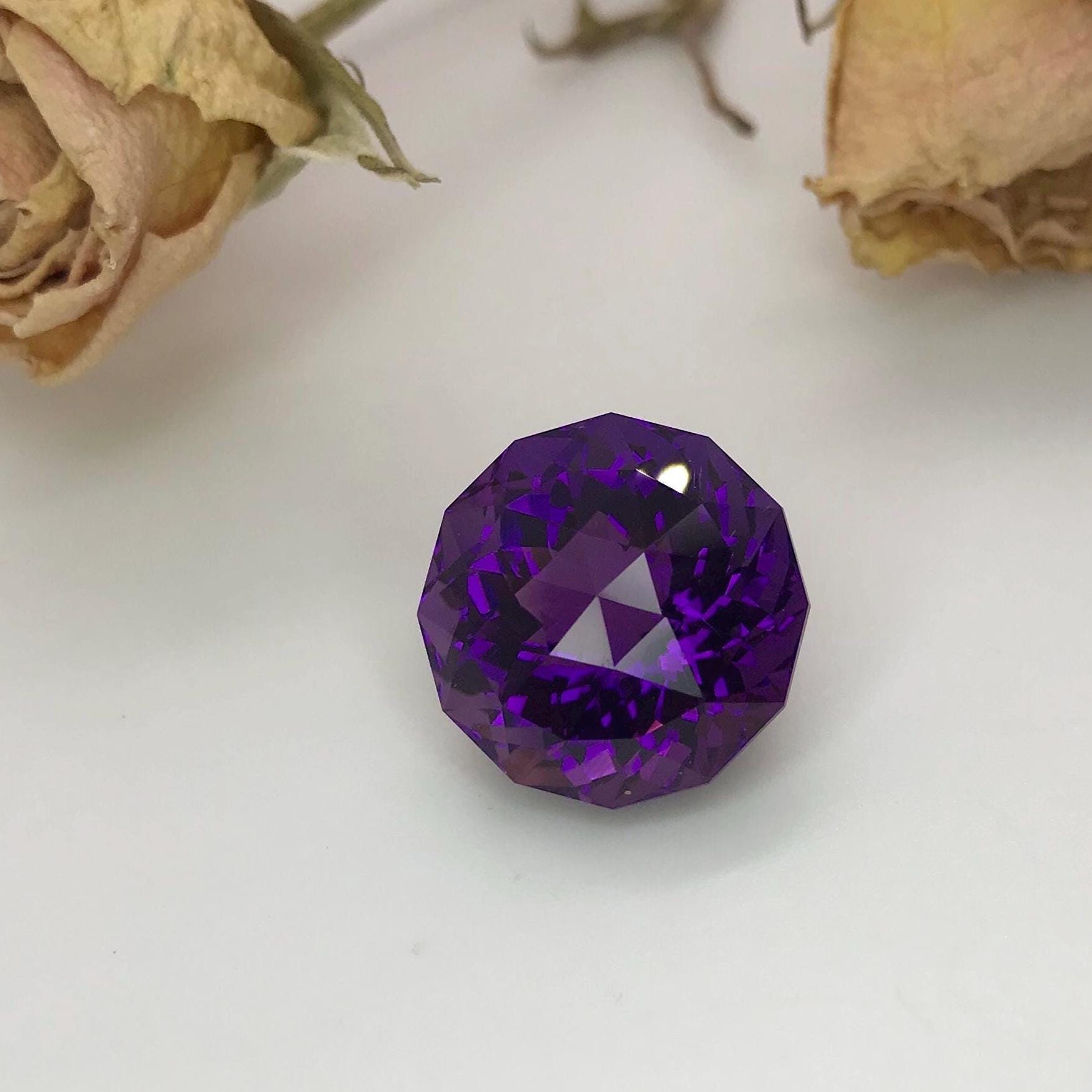16mm Purple Amethyst, Fancy Round, 17 carat Loose Gemstone Faceted February Birthstone