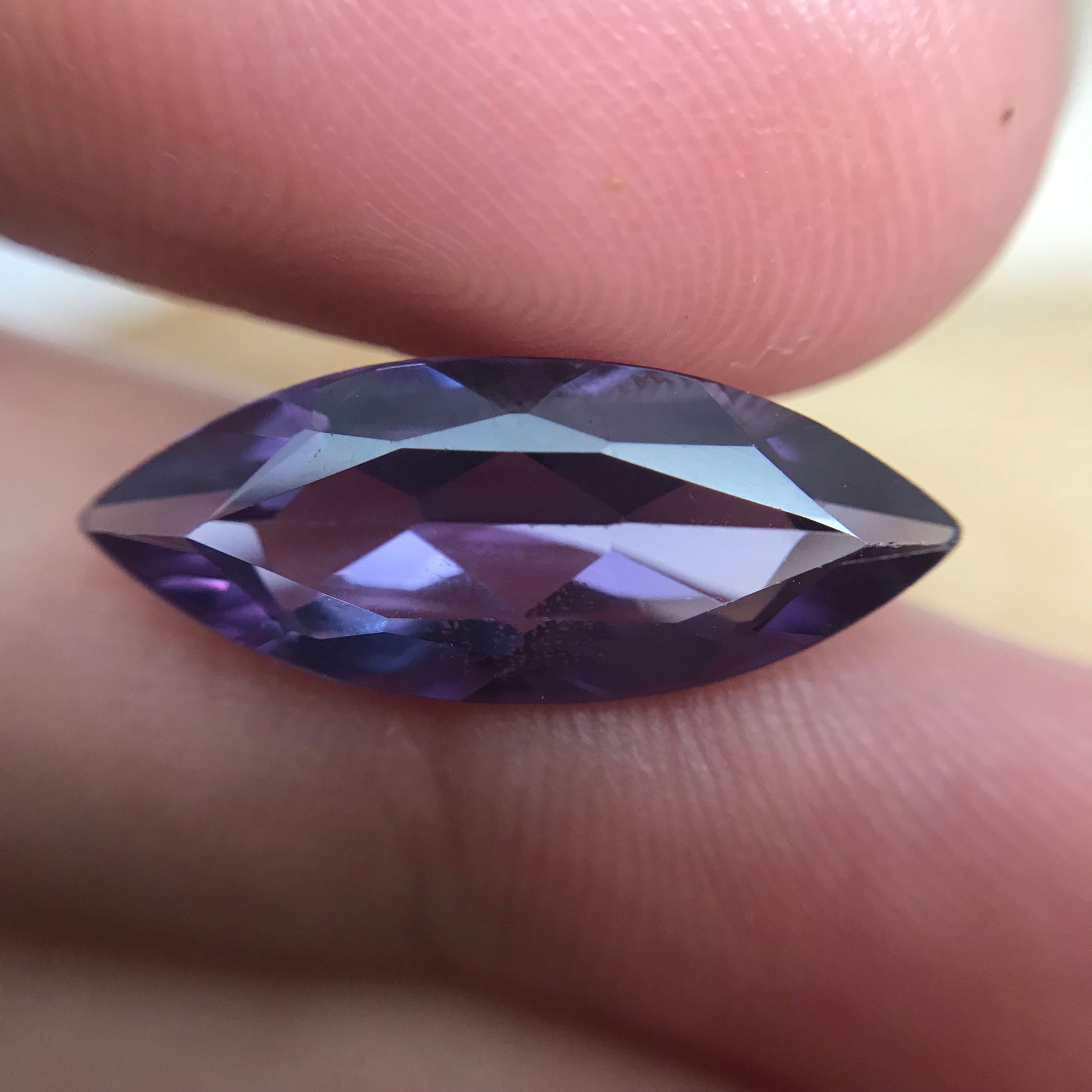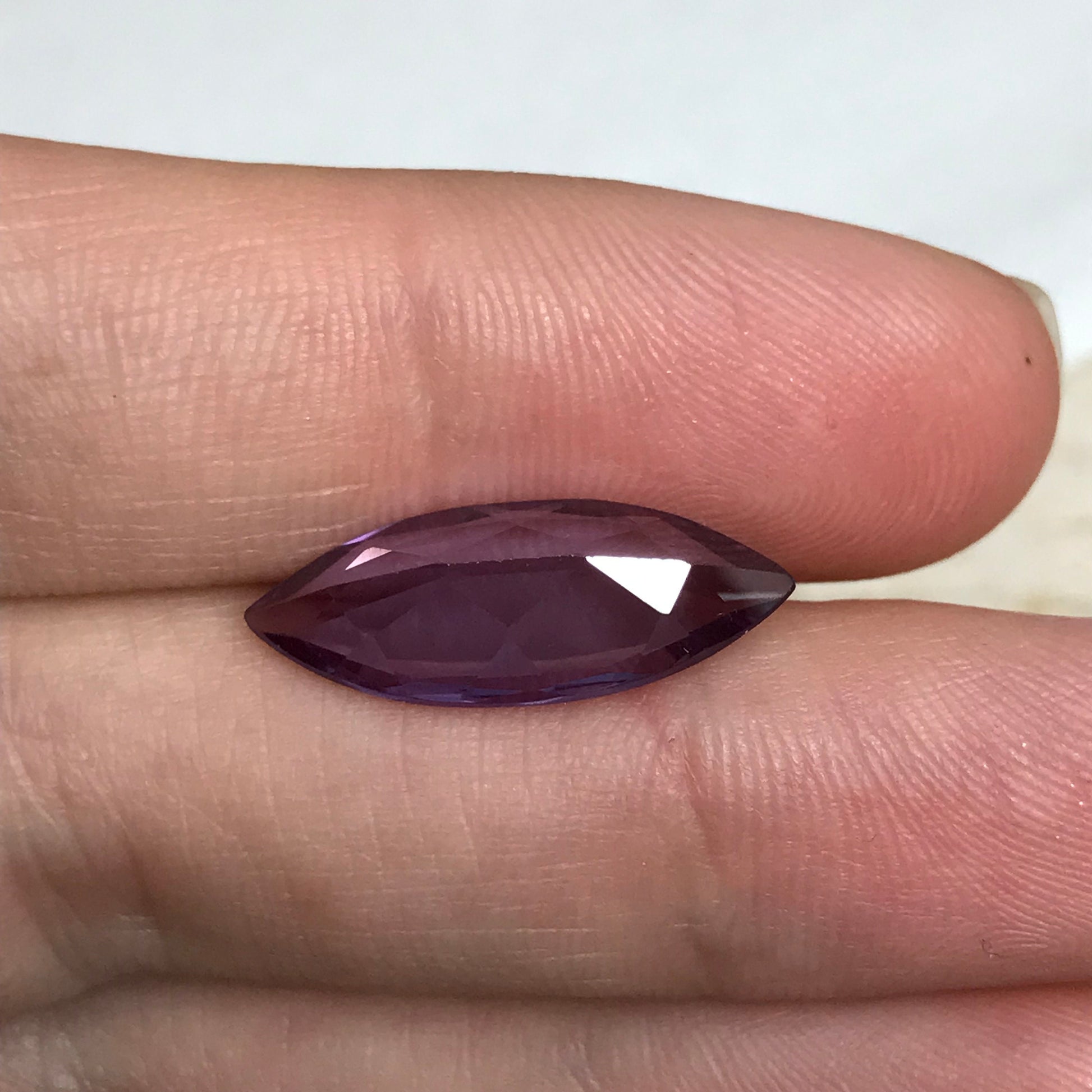 Color: Reddish Purple changing to bluish Purple (this color is supposed imitate color change alexandrite)