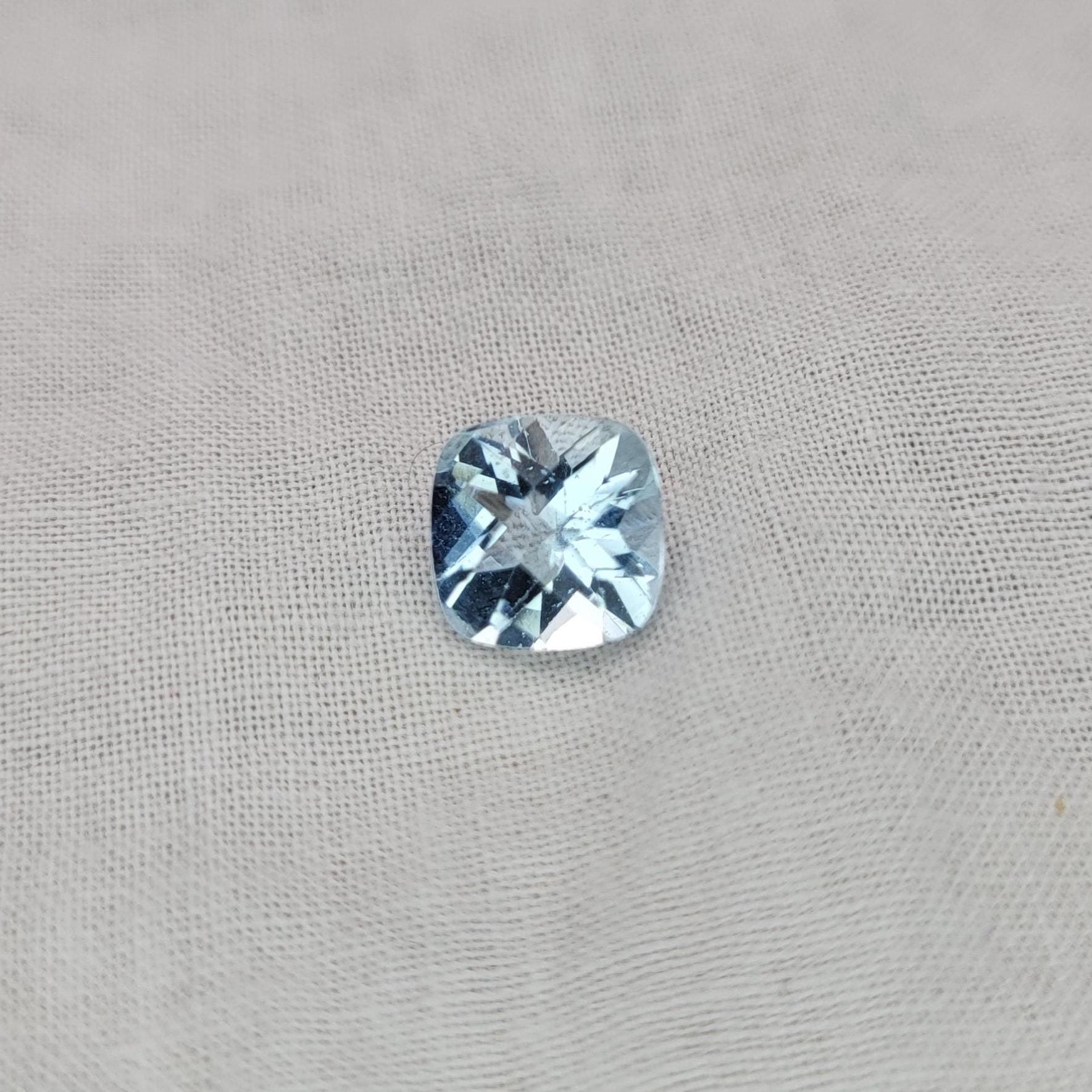 8mm Light Blue Aquamarine 2.05 carat Square Cushion Cut, Unmounted Faceted Loose Gemstone