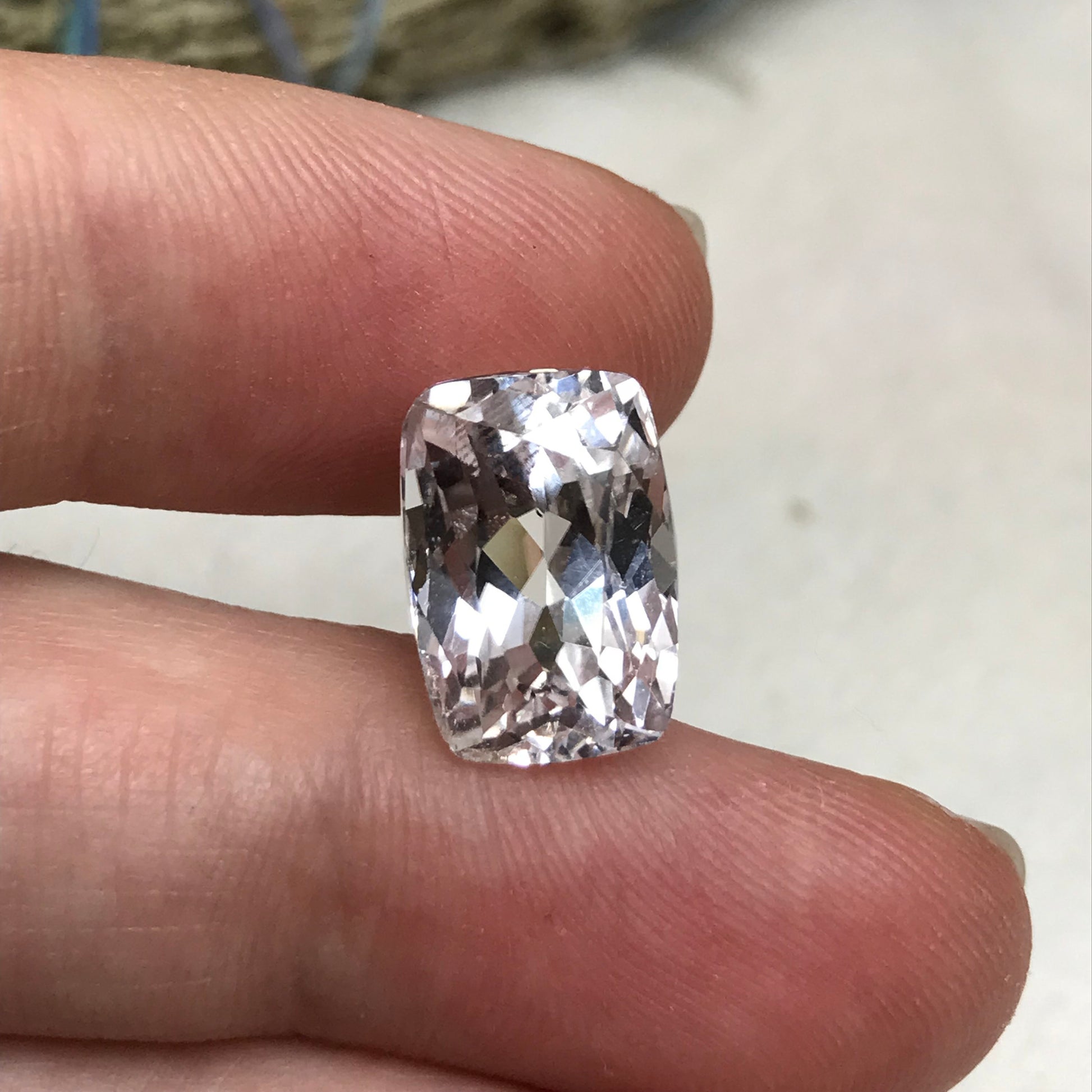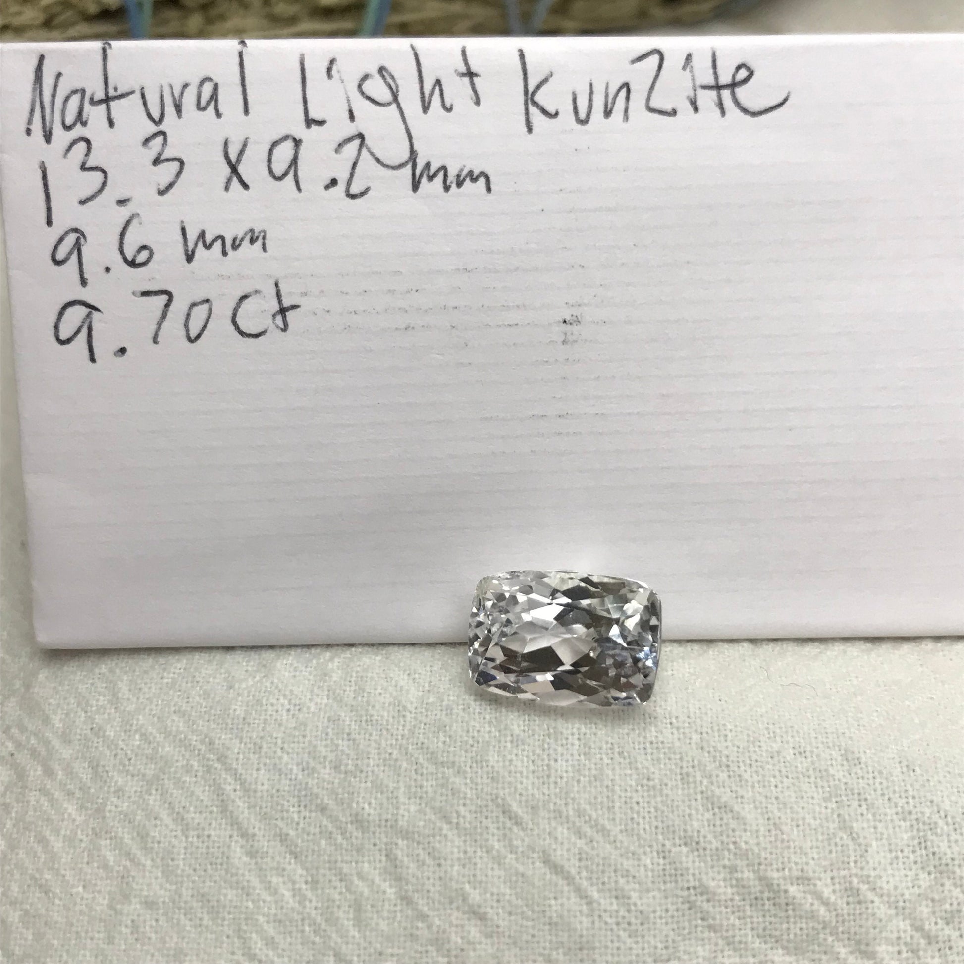 9.70 ct Light Kunzite/Spodumene 13x9mm Cushion Cut, Nearly Colorless Spodumene, Faceted Loose Gemstone,