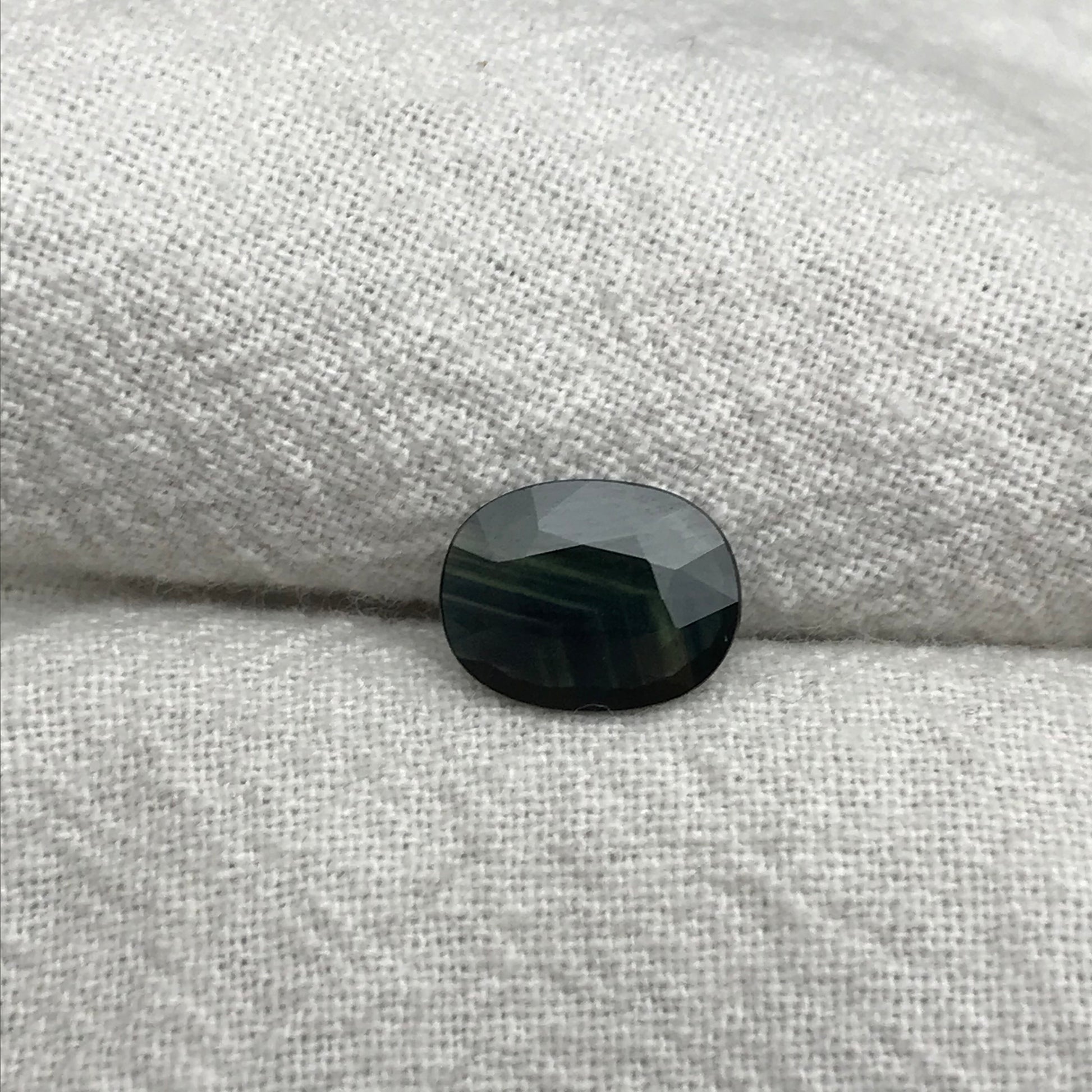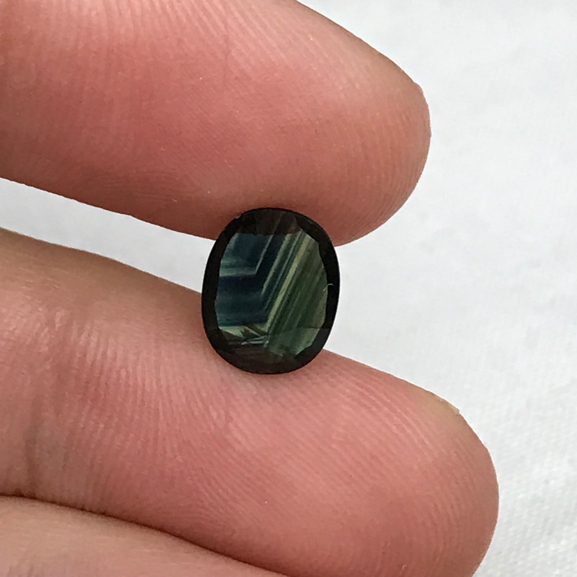 Blue Sapphire with Green Color Zoning 9.5x7.3mm Oval Cut, 1.69 Carat Faceted Loose Natural Shallow cut Sapphire