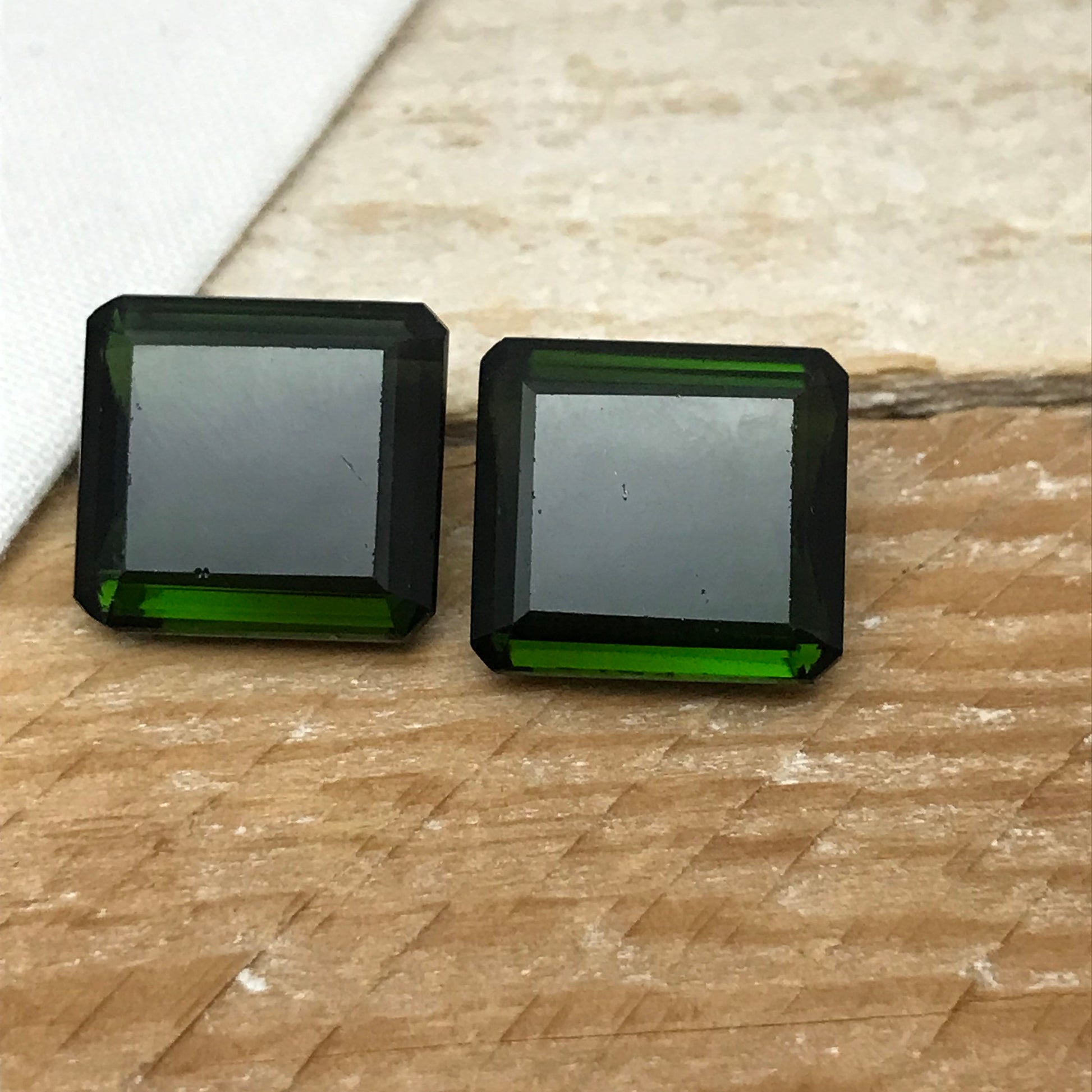 Matching 14x13mm Natural Green Tourmaline Octagon Cut, 24 CTW Loose Recycled Tourmaline, Pair of Large Tourmaline